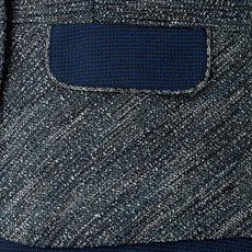 カラフルな意匠糸やラメ糸を使用したファンシーツイード素材は、華やかかつ大胆な印象。ほどよいふくらみ感が、仕立てたときに柔らかく自然なカーブを作り出します。再生ポリエステルを使用したサスティナブル素材です。