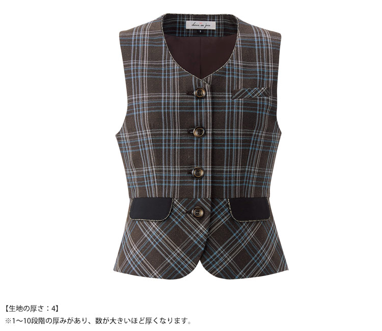 生地表面に散りばめられたブークレー糸がおしゃれでかわいいチェック柄のベスト。
