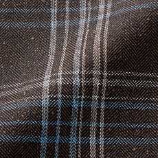 杢糸とソリッド糸で構成したミックスブラウンを基調に、多色使いのハウスチェックが特徴の素材です。生地表面に散りばめられたブークレー糸がウォーム感を演出しています。