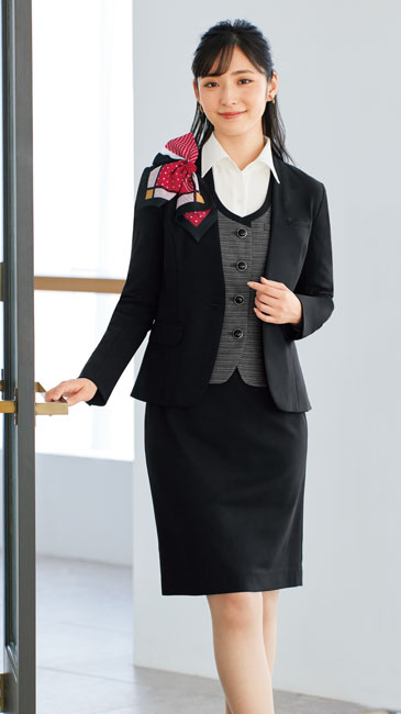 お辞儀をしたり、しゃがんだりする際にも背中が見えにくい安心感のある長めの着丈設定です。