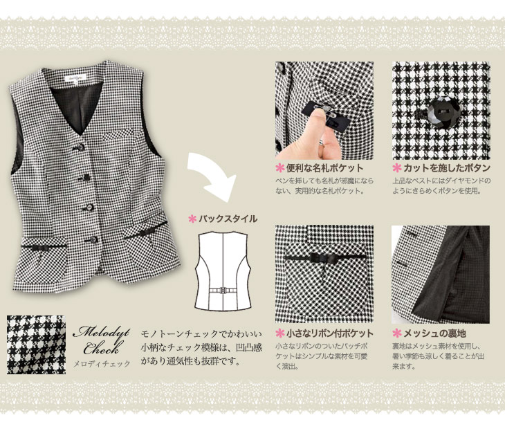 【在庫限り】モノトーンチェックベスト(21-16280)