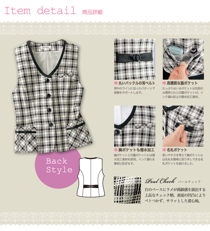 【在庫限り】[春夏用]パールチェックベスト(21-16320)