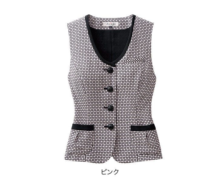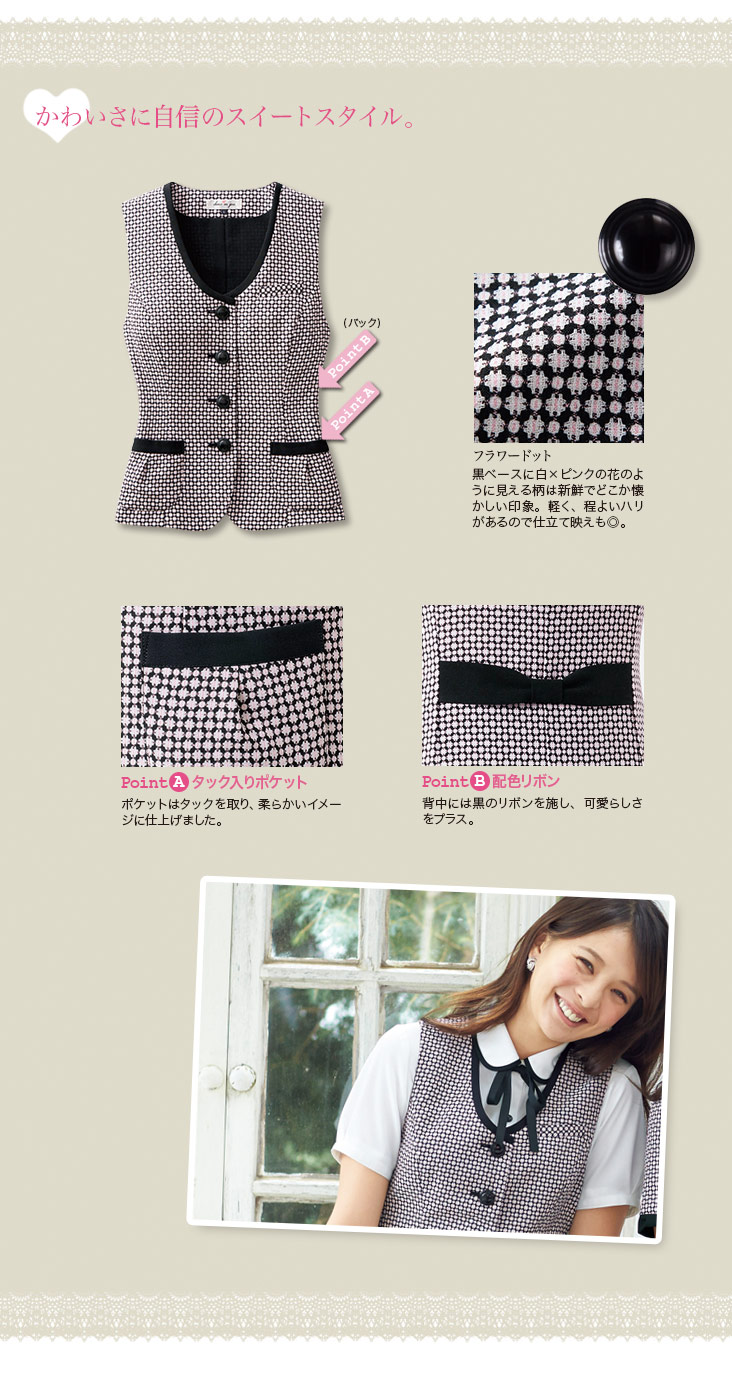 【在庫限り】[通年]白×花柄ドットのベスト(21-16490)