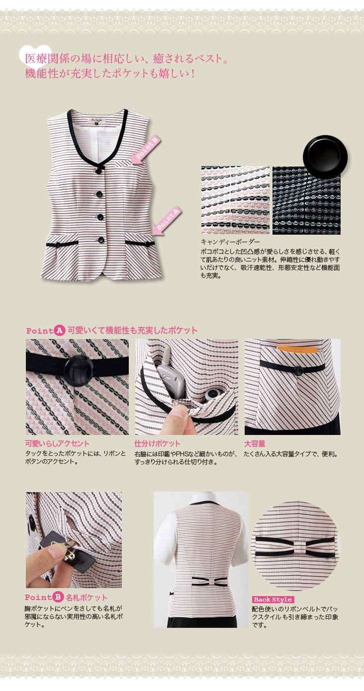 ポコポコとした凹凸感が愛らしさを感じさせる、軽くて肌当たりの良いニット素材のベスト。
