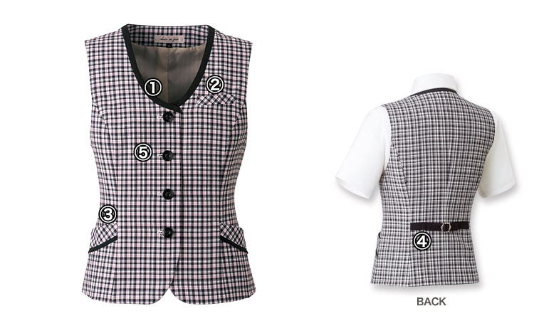 【在庫限り】[春夏用]美シルエット・チェック柄ベスト(21-16530)