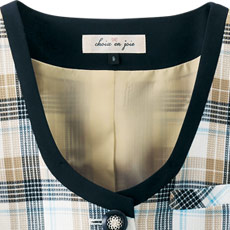 ネイビーの縁取りでメリハリをつけた曲線の襟。