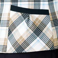 優しいベージュと水色の配色が新鮮なチェック柄。