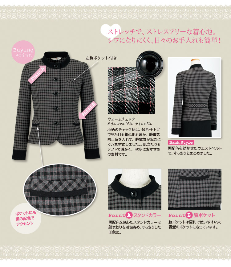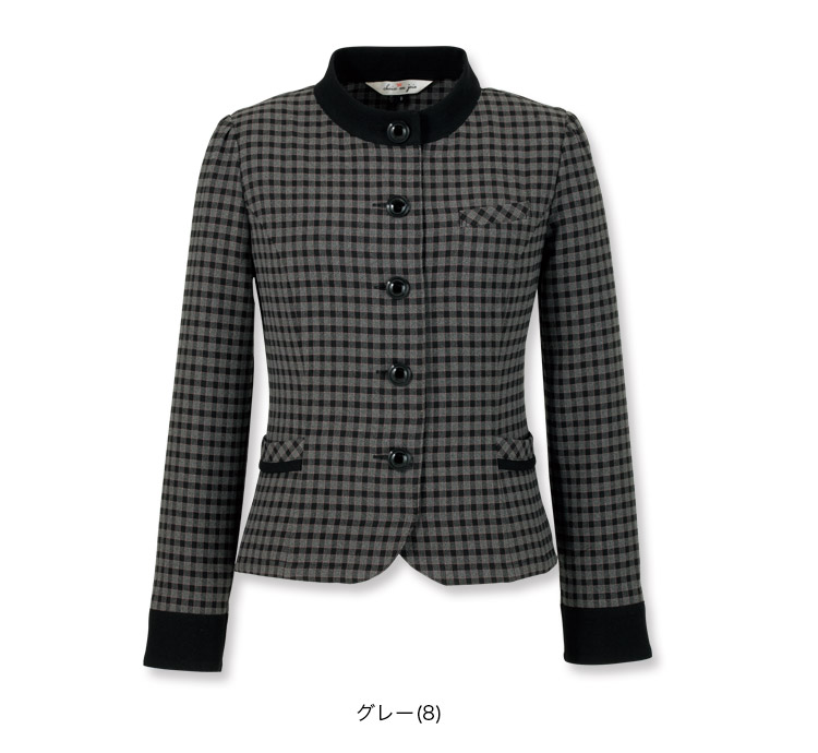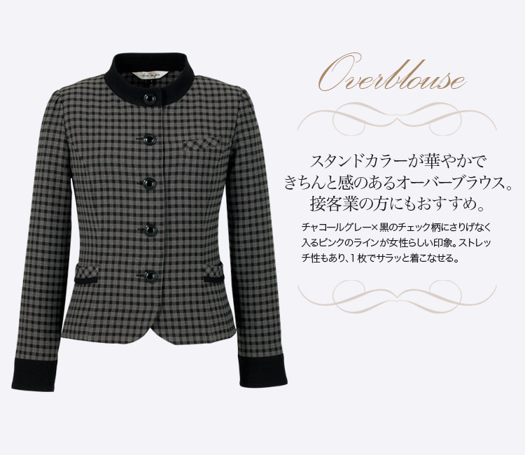 【在庫限り】[通年]上品なスタンドカラーのチェック柄オーバーブラウス(21-21000)