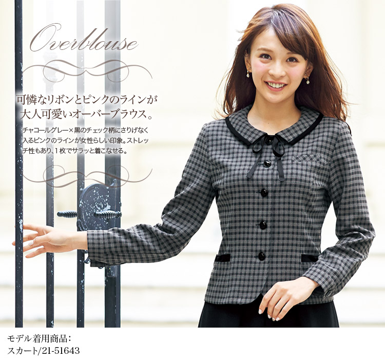 [秋冬用]リボン付きで可愛いチェック柄オーバーブラウス(21-21005)
