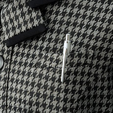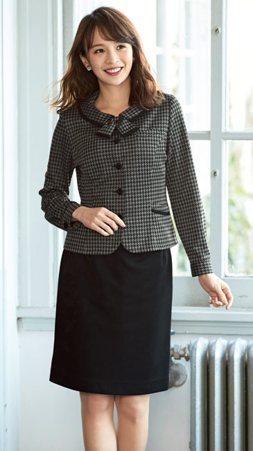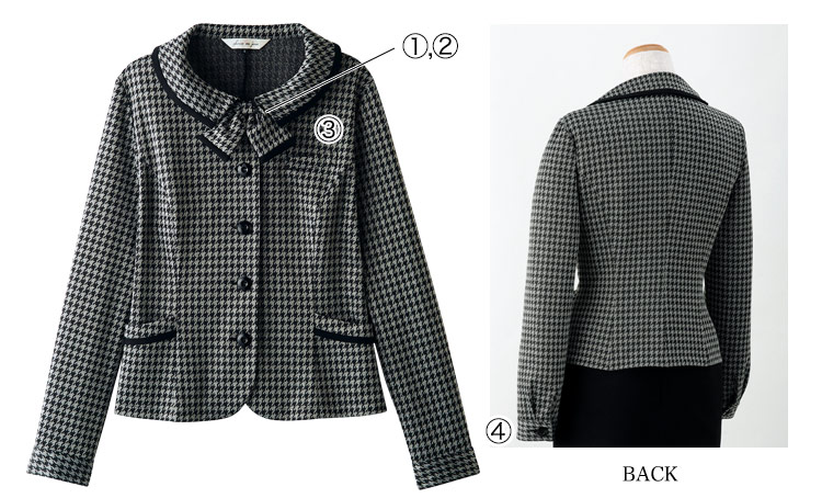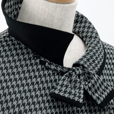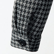 定番のチドリ柄でありながら、ツイード風の杢調の表現でおしゃれな雰囲気漂う素材。着心地が軽く、ニット素材で伸縮性に優れ、動きやすくシワになりにくいのも特徴です。