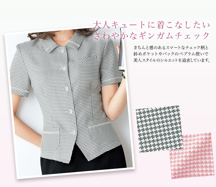 【在庫限り】[春夏用]定番の千鳥格子 涼やか愛されオーバーブラウス(21-26020)