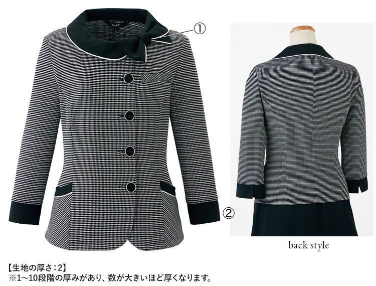 - リボン襟、生地厚2、両腰ポケット、袖口スリット