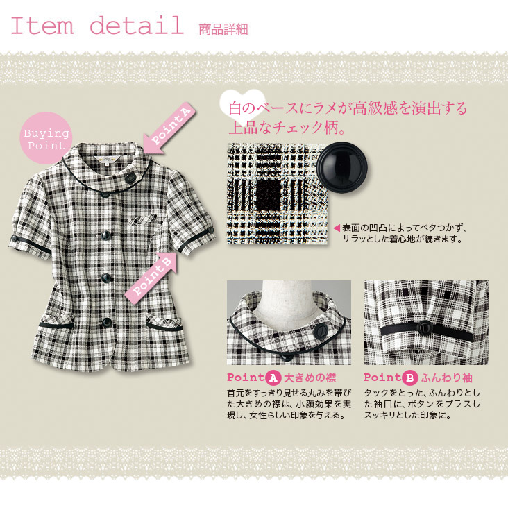 【在庫限り】[春夏用]大きめのボタンがかわいい 爽やかチェックオーバーブラウス(21-26320)