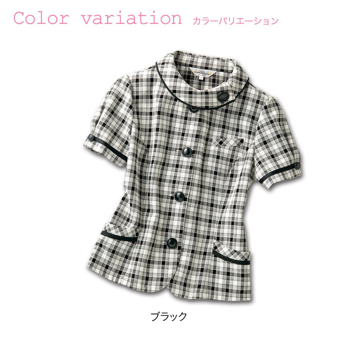 【在庫限り】[春夏用]大きめのボタンがかわいい 爽やかチェックオーバーブラウス(21-26320)