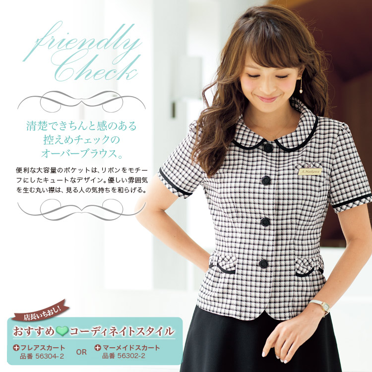 [春夏用]清楚なスタイルで好感度アップ! フレンドリーチェックオーバーブラウス(21-26390)