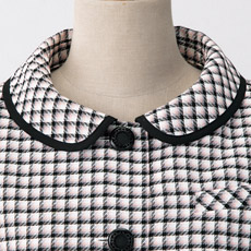 襟腰が高めのラウンドカラーは、きちんと&かわいくを両立したデザイン。