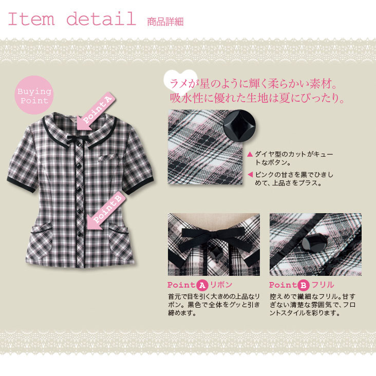 【在庫限り】[春夏用]控えめのアクセントが可憐な スターダストチェックオーバーブラウス(21-26400)