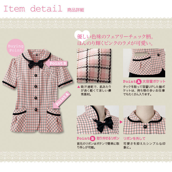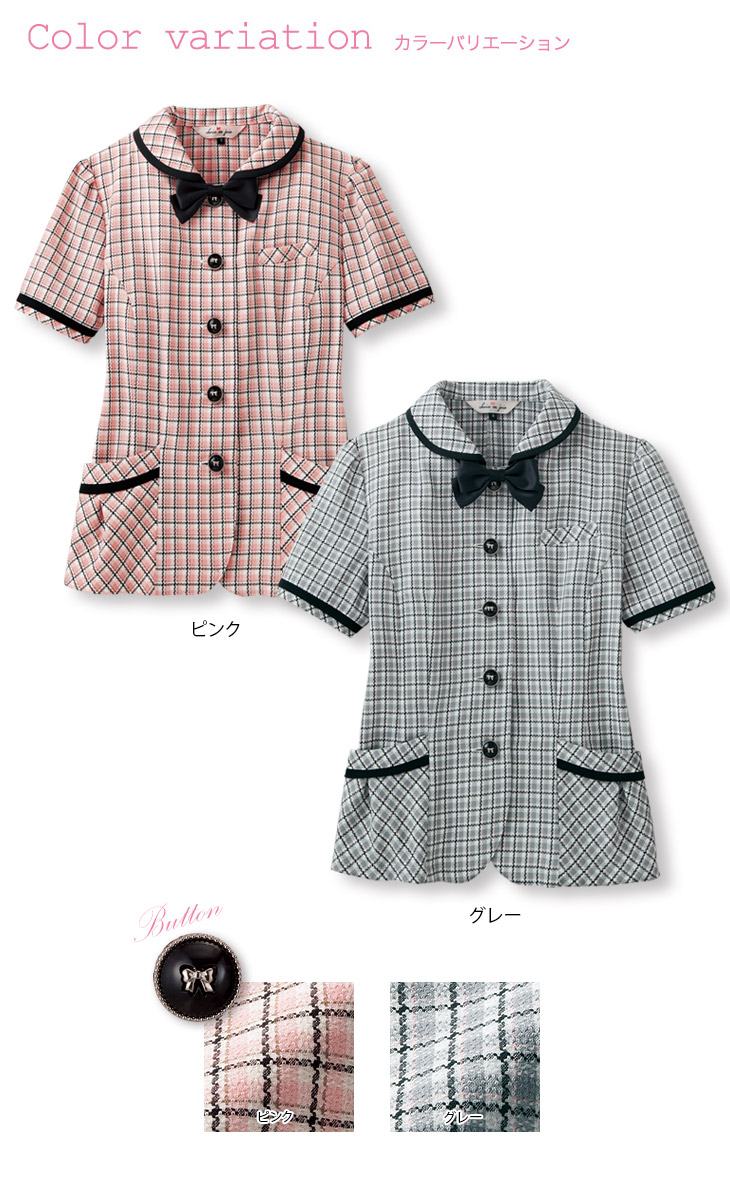 【在庫限り】[春夏用]取り外せるリボンと可愛い色が癒されるチェック柄のオーバーブラウス(21-26440)