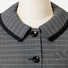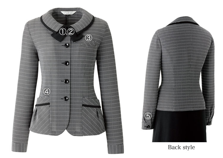 - ホームクリーニング、名札ポケット付き、胸ポケット、リボン付き、肩パッドなし、生地厚2