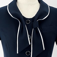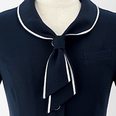襟の延長がタイになったデザイン。ループに通すだけで簡単にタイ風の襟に。