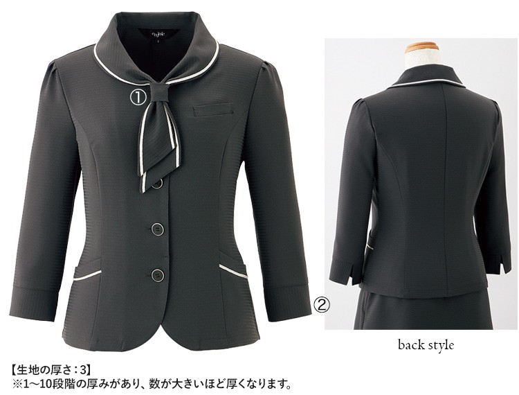 襟の延長がタイになったデザイン。ループに通すだけで簡単にタイ風の襟に。