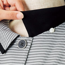 襟の内側にリボンをつけるためのボタン付き。