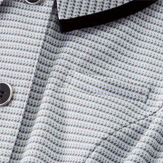 - ストレスフリーアーム、両脇ポケット、左胸ポケット、襟内側ボタン付き、生地厚4