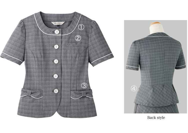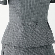 タック入りのペプラム切り替えでウエスト位置が高く見えるバックスタイル。