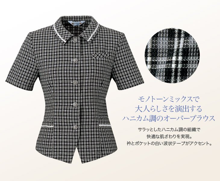 [春夏用]サラッとした肌ざわり・モノトーンのチェック柄オーバーブラウス(21-2950)