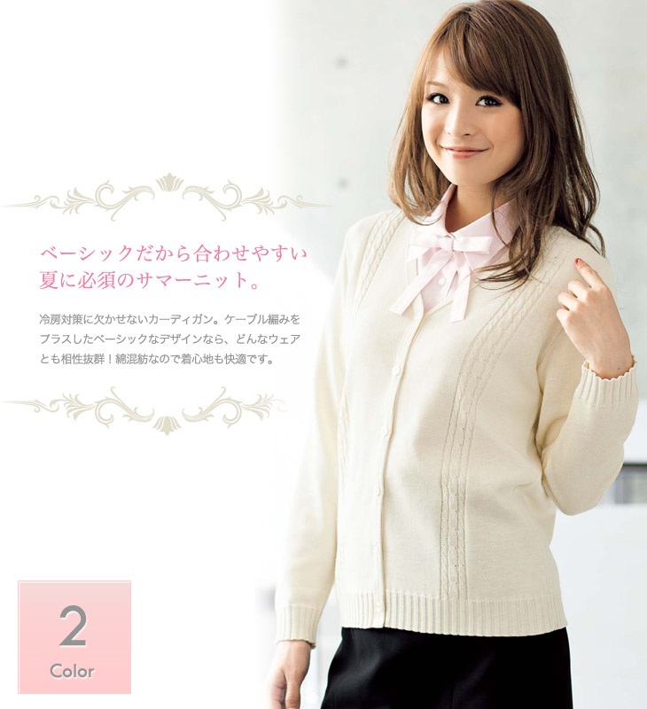 [春夏用]【厚さ:中】ケーブル編みサマーカーディガン(21-3600)