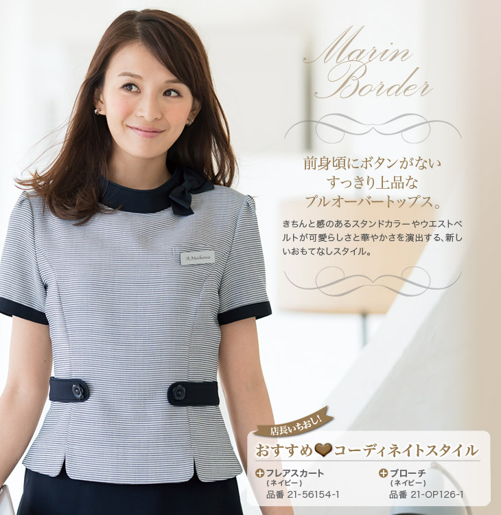 【在庫限り】[春夏用]可愛く華やかなマリンボーダーのプルオーバートップス(21-46410)