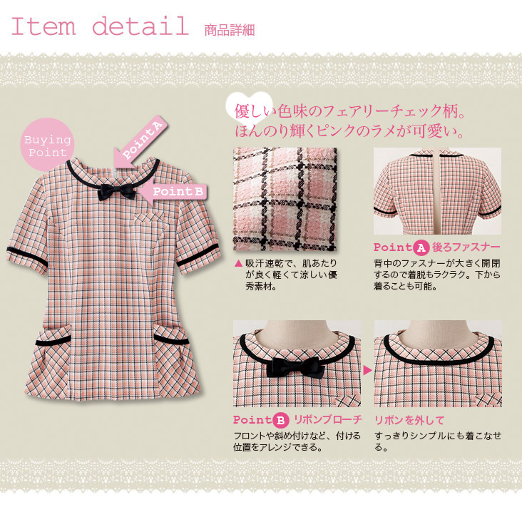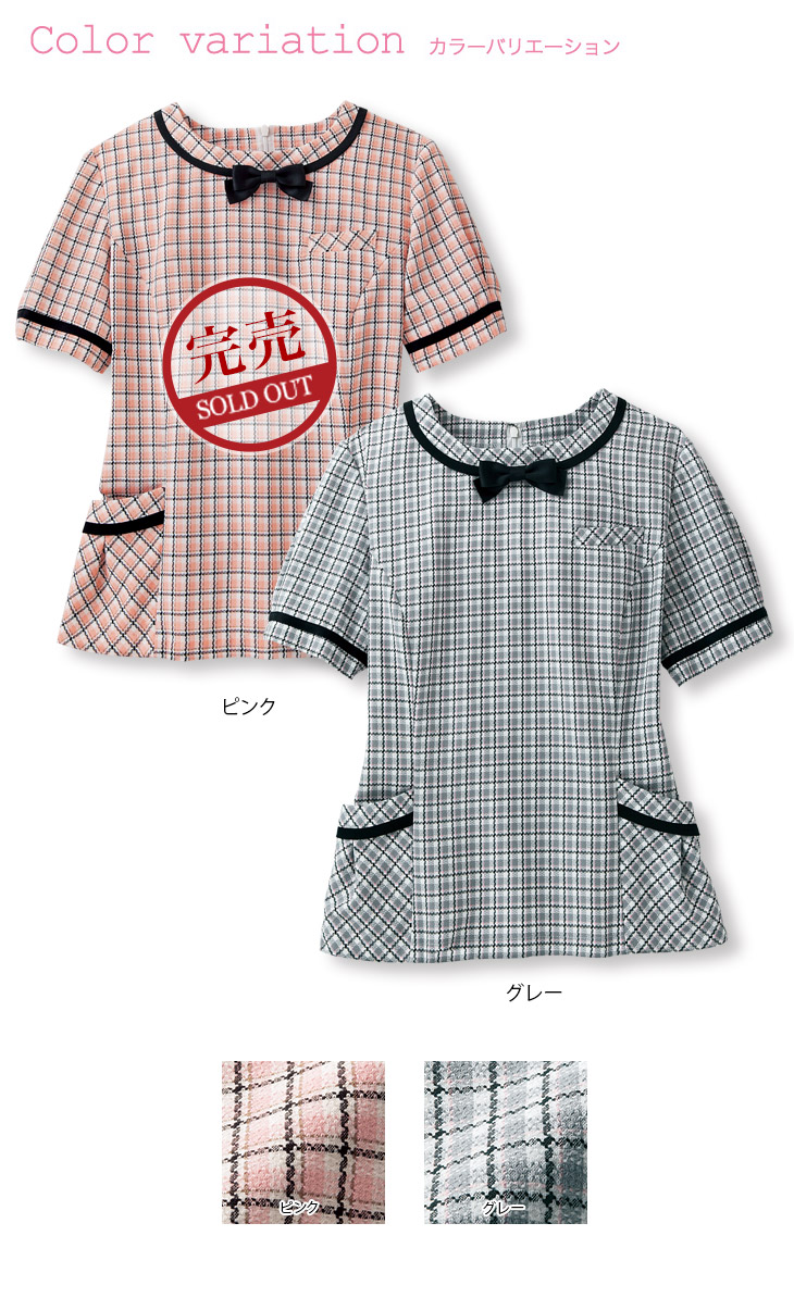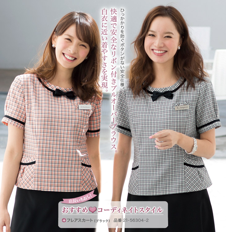 【在庫限り】[春夏用]取り外せるリボンブローチ付きのチェック柄プルオーバーブラウス(21-46440)