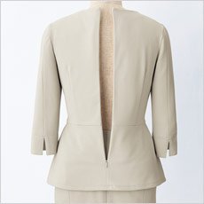 - 後ろファスナー、胸ポケット