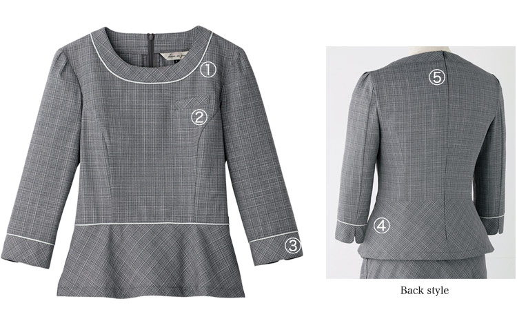 すっきりとしたデザインのバックスタイル。ウエストは切り替えを施し脚長効果も期待できます。