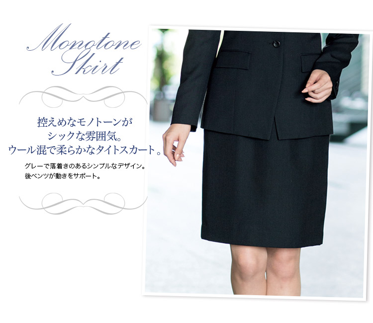 【在庫限り】[通年]ウール混で柔らかな質感のグレーのタイトスカート<55cm>(21-51050)