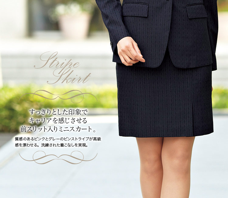 [通年]洗練感のあるピンストライプの前スリット・ミニスカート<50cm>(21-51092)