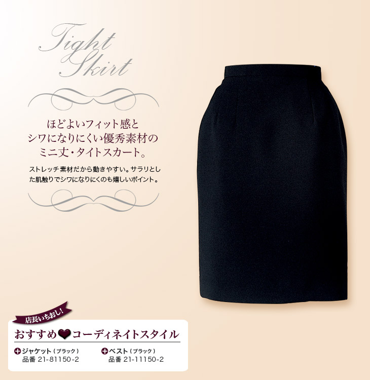 【在庫限り】[通年]ストレッチ性あり・ほどよいフィット感の黒のミニ丈・タイトスカート<50cm>(21-51155)