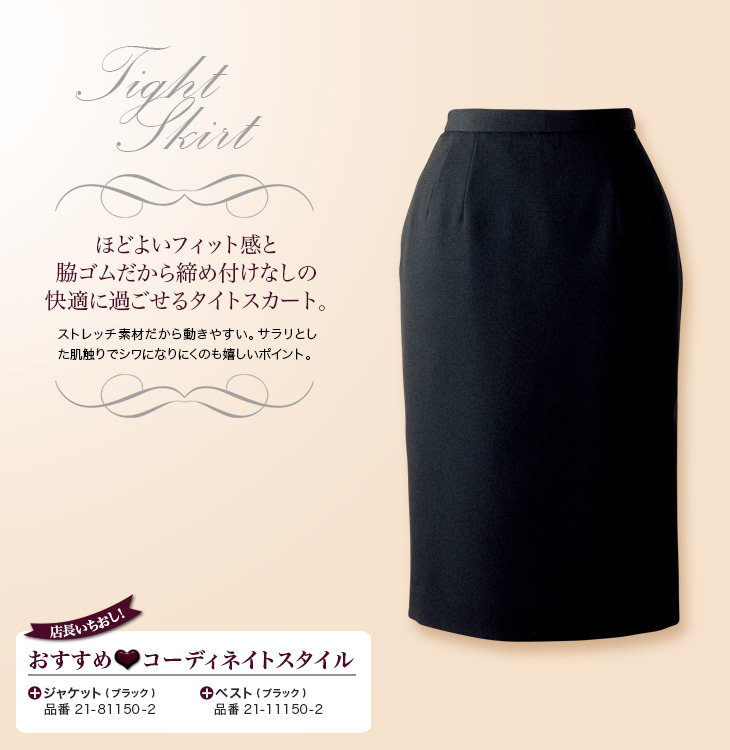 【在庫限り】ストレッチ性あり・脇ゴムでしめつけなしの黒のタイトスカート<60cm>(21-51156)