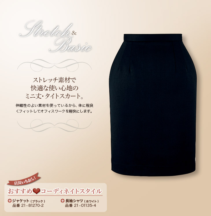 【在庫限り】[通年]ストレッチ素材のシンプルで使いやすいミニ丈・タイトスカート<50cm>(21-51275)