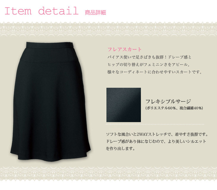 [通年]美しいシルエットと着やすさを両立! フェミニン・フレアスカート<53cm>[女性用](21-51412)