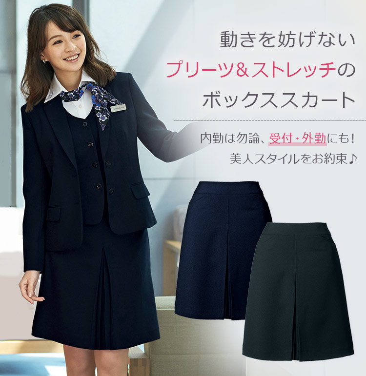 【在庫限り】[通年]足さばきも抜群で外勤にもピッタリ! ボックスプリーツスカート<53cm>(21-51414)