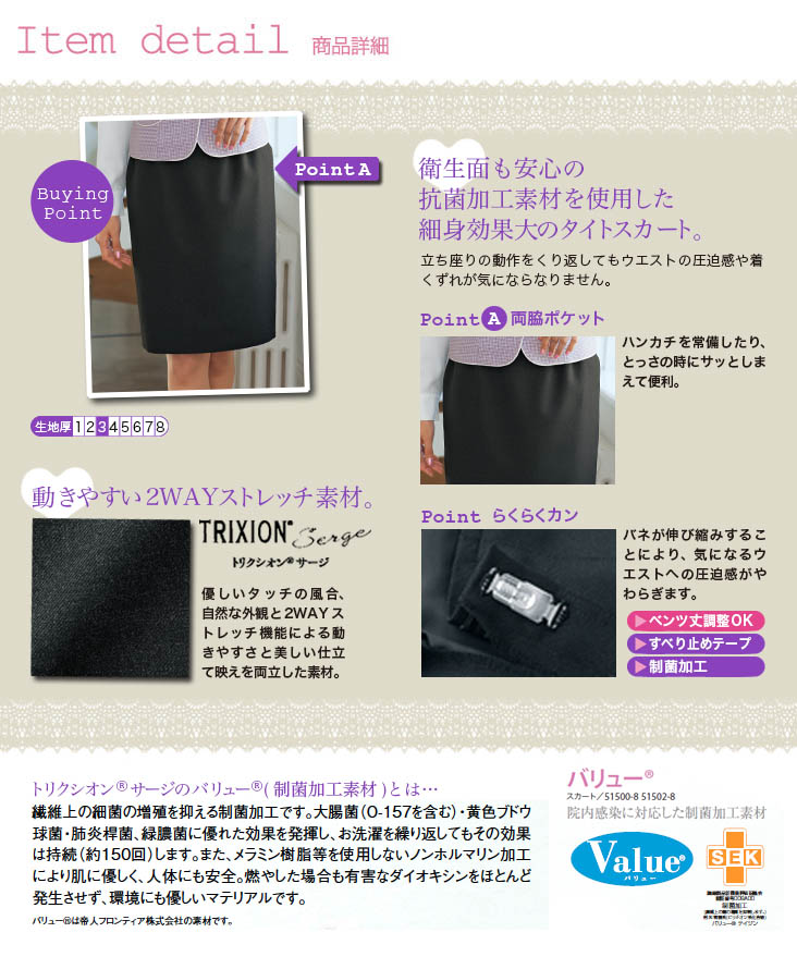 【在庫限り】[通年]抗菌加工で衛生面も安心 はき心地抜群のタイトスカート<55cm>(21-51500)