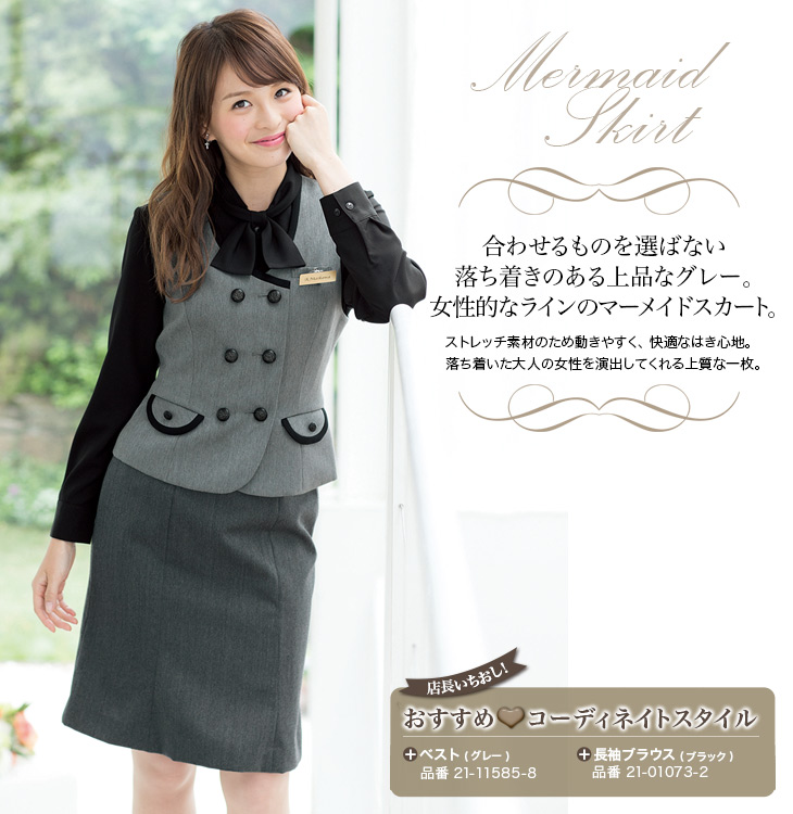 【在庫限り】[通年]上品なグレー・女性的なラインのマーメイドスカート<55cm>[女性用](21-51592)