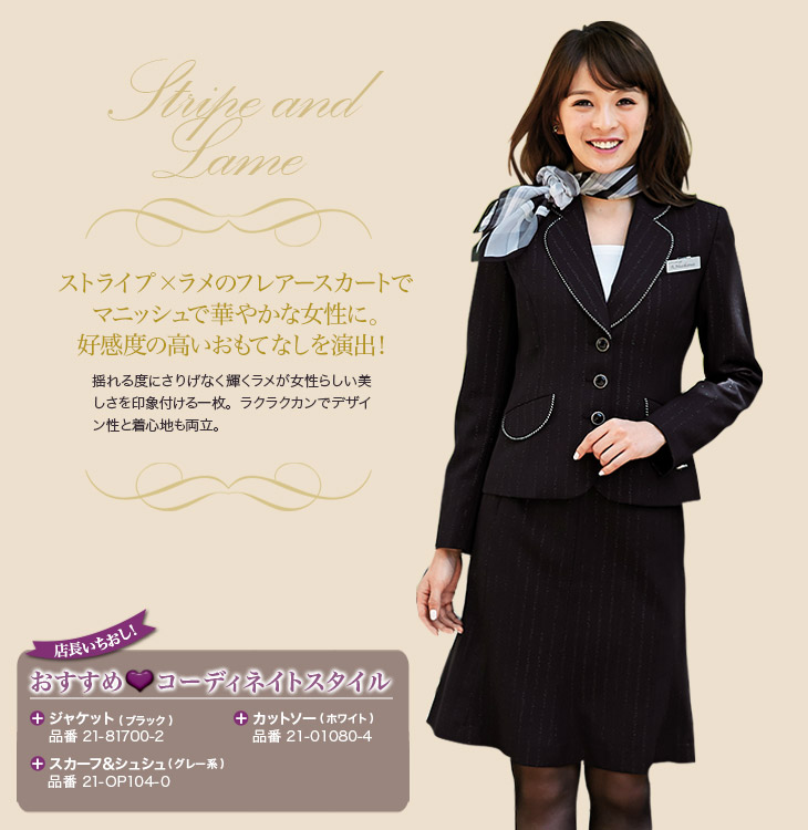 【在庫限り】[通年]<華やかなおもてなしに>ストライプ×ラメのフレアースカート<53cm>(21-51703)