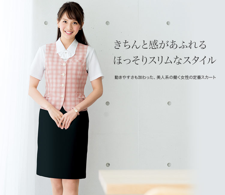 【在庫限り】[春夏用]2WAYストレッチで動きやすい 知的美人系の定番タイトスカート<55cm>(21-56150)