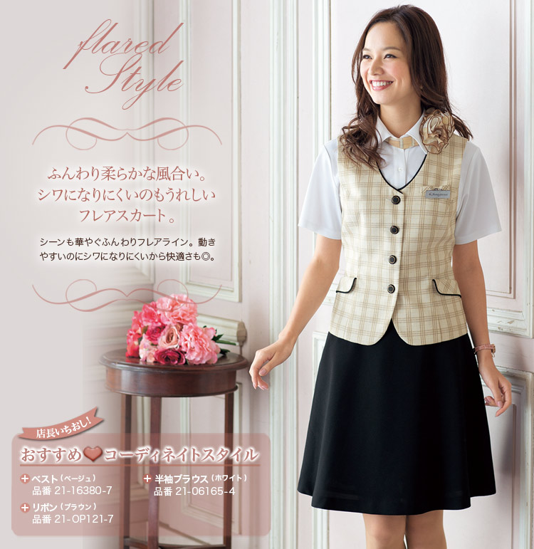 【在庫限り】[春夏用]夏素材で快適!2WAYストレッチフレアスカート<53cm>(21-56304)
