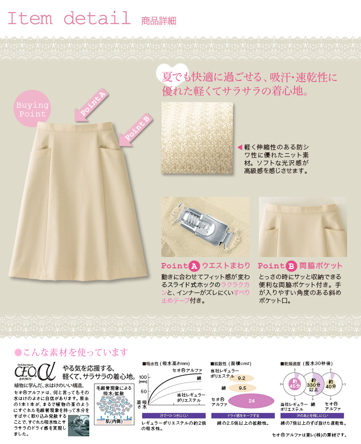 [春夏用]Aラインスカート[ニット/ストレッチ/吸水速乾/高通気](89-16971)