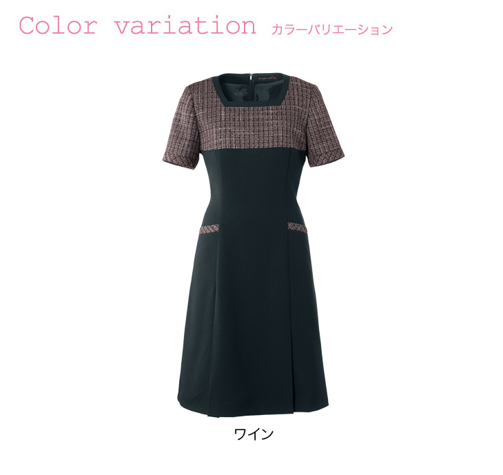 - 身頃・袖部分:スラブチェック(ポリエステル52%、毛14%、レーヨン34%)/スカート部分:フレキシブルサージ(ポリエステル60%、複合繊維40%)