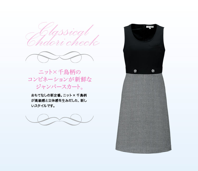 【在庫限り】[通年]ニット×千鳥柄のスタイルアップするジャンパースカート(21-61460)