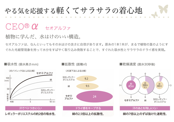 - 身頃部分:吸汗速乾、生地厚8/スカート部分:生地厚7